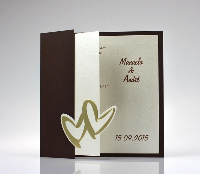 braune Klappkarte, cremefarbener irisierender Einleger, Folieprägung